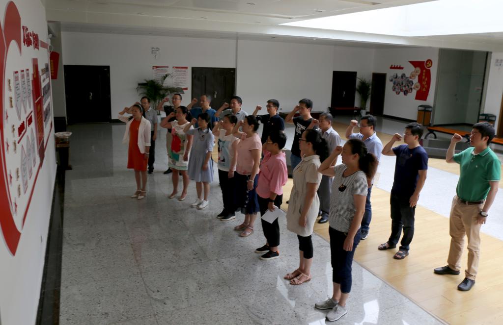 7月11日,錫業股份機關第五黨支部在錫博物館四樓組織全體黨員以多種形式紀念中國共產黨建黨97周年,推動黨支部規范化建設達標創建和“四講四有”黨員隊伍建設,增強黨員干部做好機關服務工作、立足崗位擔當作為、敬業奉獻多作貢獻的政治責任感。